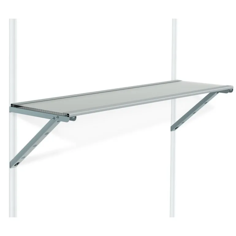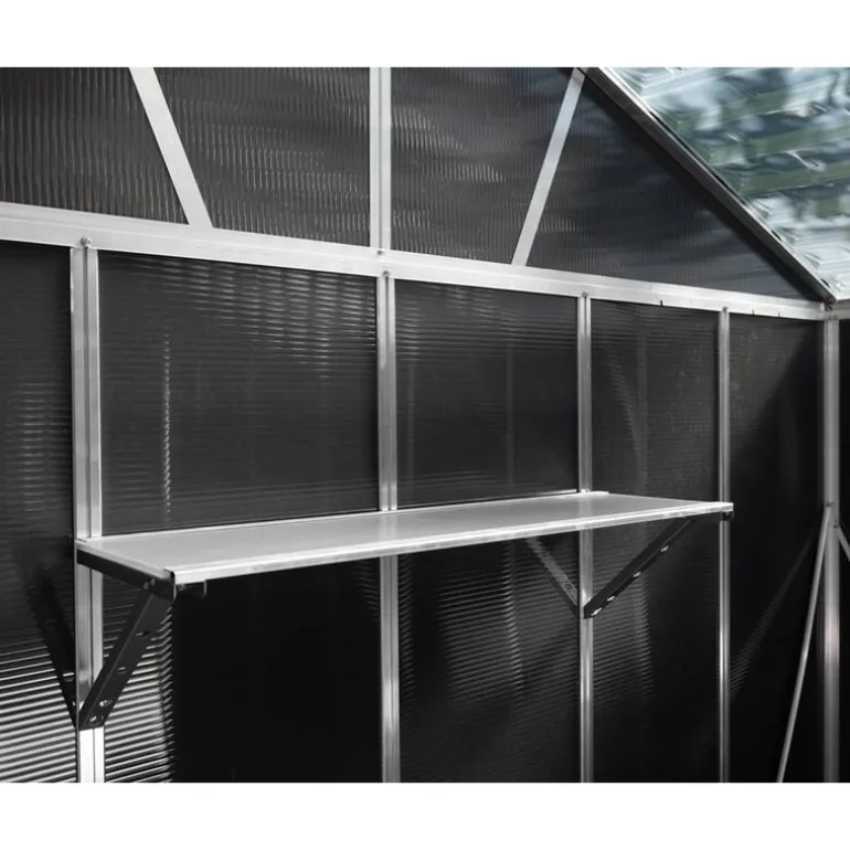 Ottimizza il tuo spazio ripostiglio con questo kit di scaffali per capanni. Questo kit è completo di 1 ripiano in policarbonato, 2 profili in alluminio, 2 staffe in acciaio galvanizzato e ferramenta. Questo scaffale ti farà risparmiare spazio sul pavimento e ti permetterà di organizzare in modo efficiente il tuo capannone. Lo scaffale può contenere fino a 20 kg. ed è designato per essere montato sul telaio in alluminio della serie Palram -CanopiaYukon Storage Shed.