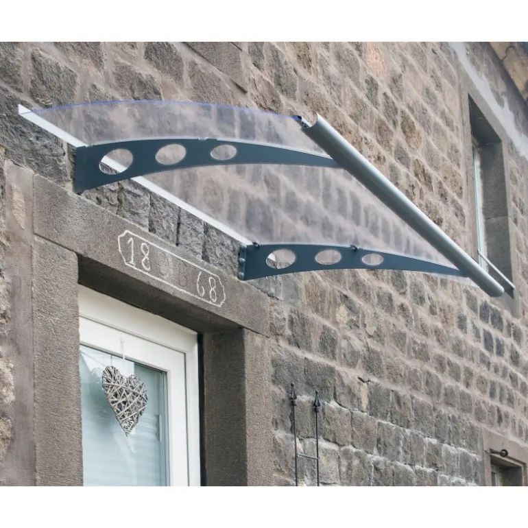 La pensilina per porta Garamond 135X90 elegante e ben progetta offre protezione per porte di ingresso o finestre. La grondaia frontale spinge pioggia e neve di lato, tenendo l’ingresso pulito, mentre il pannello in policarbonato resistente a raggi UV al 100% da 3 mm trasparente anti-rottura filtra i raggi del sole e non scolorisce nel tempo. Aggiungi valore alla tua casa o proprietà con un tettuccio per porta fai da te. Realizzato per durare negli anni, fornito con tutti gli accessori di montaggio, oltre che sistema di blocco che rende l’installazione ancora più semplice.