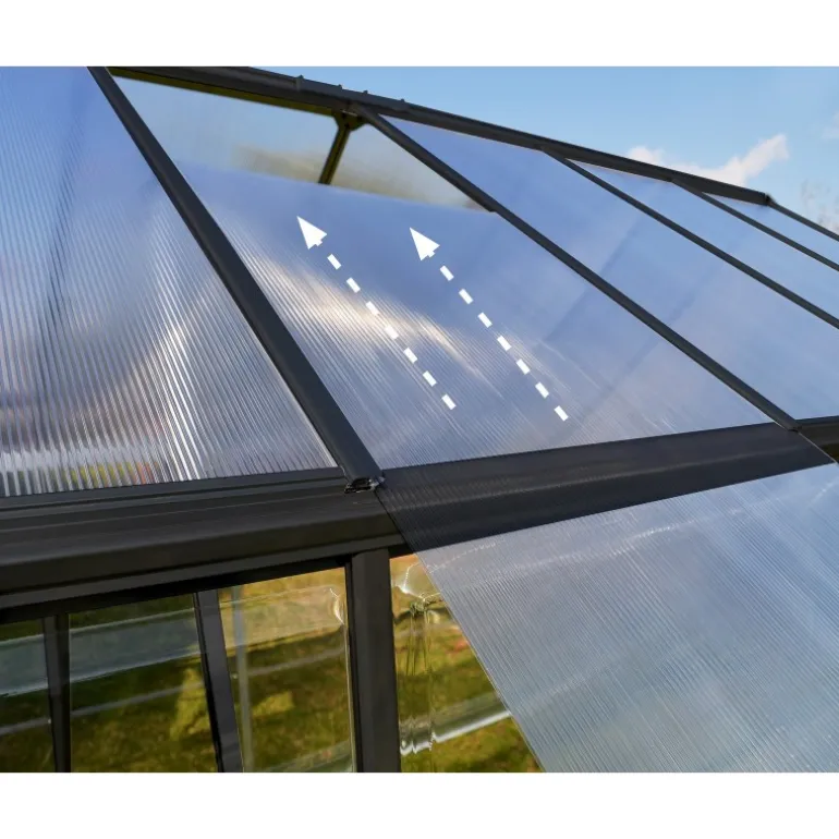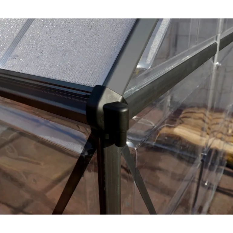 Hybrid è un modello di serra ingegnoso per appassionati di giardinaggio che offre 2 tipi di pannelli in policarbonato praticamente indistruttibile insieme a telaio in alluminio inossidabile resistente, verniciato a polvere. Questo prodotto soddisfa tutte le esigenze di giardinaggio. I pannelli sul tetto doppi bloccano il 100% dei raggi UV dannosi e diffondo la luce diretta del sole. I pannelli sui lati trasparenti fanno passare il 90% della luce del sole. La serra Hybrid è robusta, esteticamente bella e non richiede manutenzione per anni di divertimento in giardino.