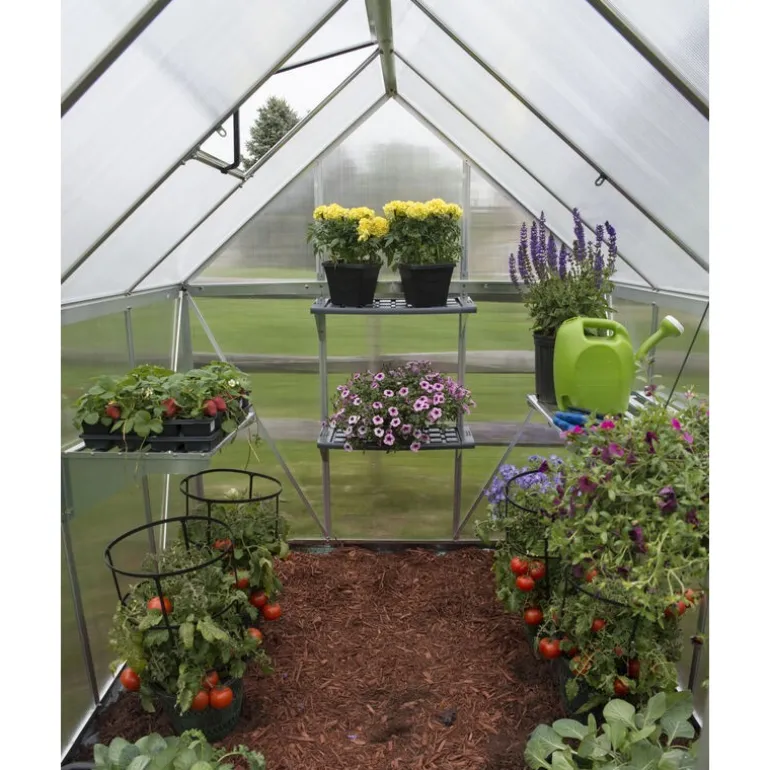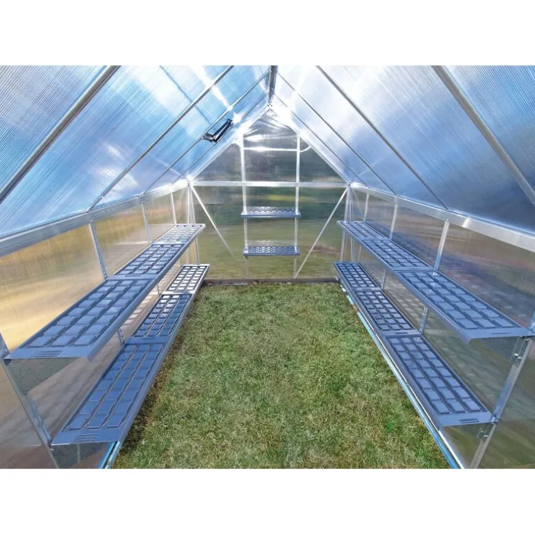 Ottimizza la tua serra Palram – Canopia con il kit di due ripiani Canopia. Realizzati in PVC resistente e facile da pulire, con bracci e cerniere in acciaio galvanizzato, questi scaffali supportano fino a 20 kg ciascuno. Facili da montare sul telaio della serra, possono essere regolati e smontati per una pulizia efficace. Compatibili con tutte le serre Palram – Canopia. Kit di montaggio incluso.