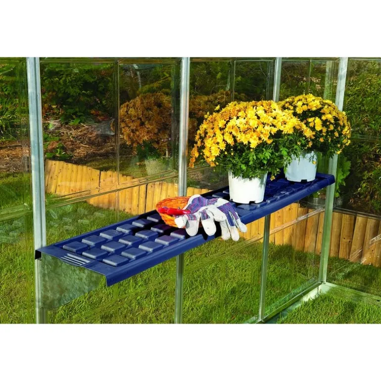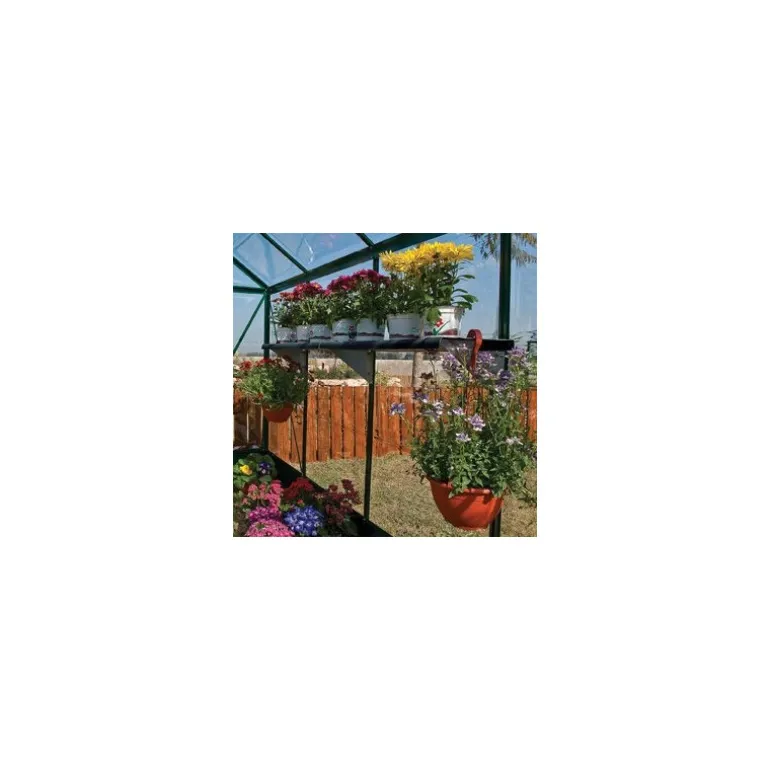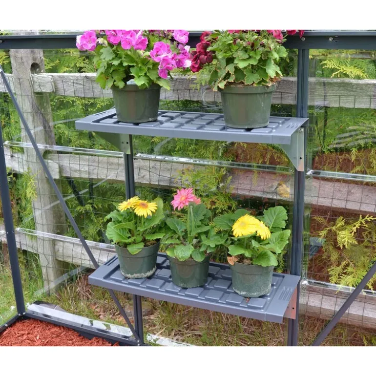 Rendi la tua serra Palram – Canopia più accessoriata con questo kit di due scaffali. Risparmia spazio e rendi la struttura più funzionale. Gli scaffali sono realizzati in plastica PVC facile da pulire con bracci e cerniere in acciaio galvanizzato. Ogni scaffale supporta fino a 20 kg e si monta sul telaio della serra. Questi scaffali possono essere smontati per rimuovere piante o terriccio in eccesso che potrebbe accumularsi sul fondo del ripiano.