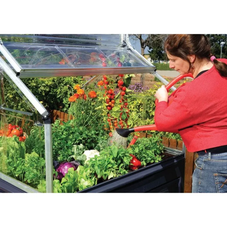 Scopri la Mini Serra da Giardino Canopia Plant-inn, perfetta per coltivare erbe e ortaggi tutto l’anno. Realizzata in policarbonato resistente, include un telaio in alluminio, pannelli indistruttibili, un compartimento integrato e un’aiuola rialzata. Con un coperchio regolabile per controllare umidità e temperatura, offre anche un sistema di scolo dell’acqua interno e tralicci per piante. Facile da montare, è la soluzione compatta per il tuo giardinaggio.