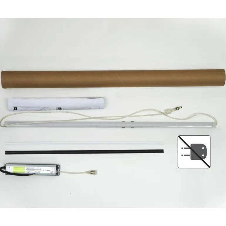 - Il kit di illuminazione a LED include profilo in alluminio, striscia di LED, pannello per diffondere la luce, trasformatore integrato e cavi (presa non inclusa)