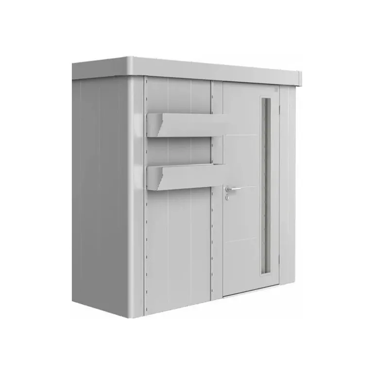 Due supporti dello stesso colore della casetta porta attrezzi vengono fissati con viti alla parete esterna, per poter appendere la fioriera FloraBoard all’altezza desiderata. Gli inserti in plastica per facilitare la messa a dimora delle piante sono inclusi nella confezione del prodotto.
