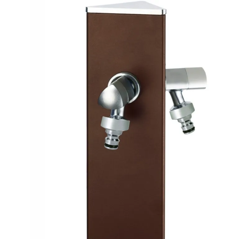 Colonnina idrica triangolare da parete, completa di due rubinetti, sella portatubo e viteria. Raccordo orientabile per fissaggio alla rete idrica incluso. Disponibile in 3 colori.