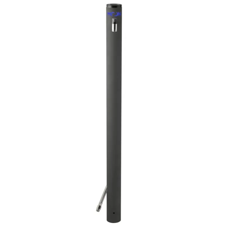 Colonnina idrica in acciaio verniciato tonda da interrare, con LED notturno a ricarica solare. Completa di rubinetto verniciato e sella portatubo in acciaio inox. Accessori di fissaggio esclusi. Disponibile in 3 colori.