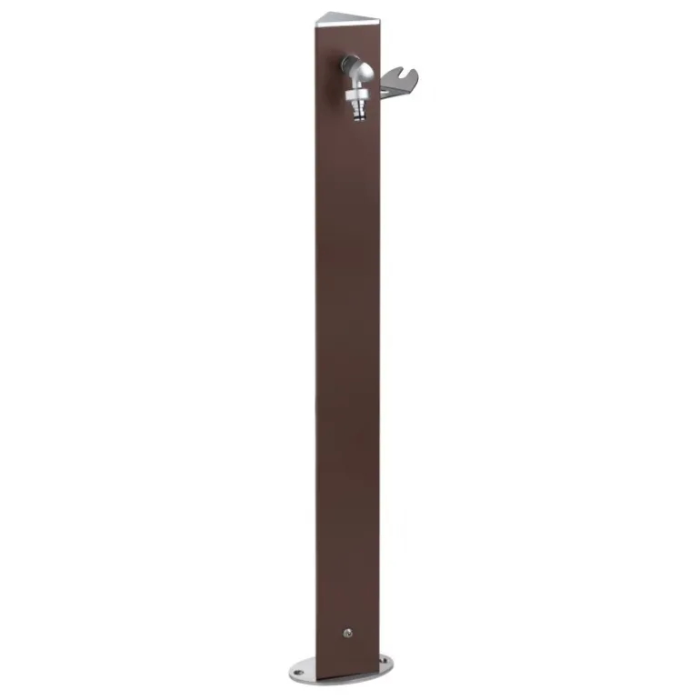 Colonnina idrica triangolare in acciaio verniciato da posare in superficie. Completa di rubinetto in ottone cromato, sella portatubo e basamento di fissaggio in acciaio inox. Viteria inclusa, accessori di fissaggio esclusi. Disponibile in 6 colori.