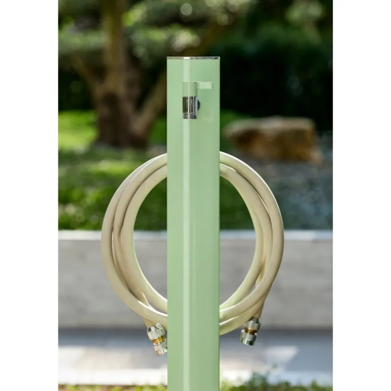 Tutte le fontane Colortap della linea Aquapoint sono progettate secondo uno stile moderno che non rinuncia a funzionalità e durata nel tempo: vengono infatti realizzate con estrusi di alluminio lavorati e verniciati a polveri poliestere antigraffio per outdoor, così da resistere a pioggia, caldo e corrosione. Tutta la componentistica è antiruggine e resistente alle intemperie. La sella portatubo è in acciaio inox, così come il basamento di fissaggio, mentre i rubinetti sono in ottone cromato.