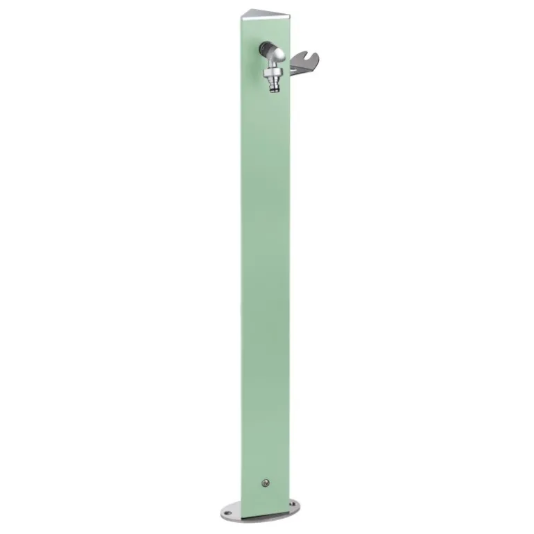 Colonnina idrica triangolare in acciaio verniciato da posare in superficie. Completa di rubinetto in ottone cromato, sella portatubo e basamento di fissaggio in acciaio inox. Viteria inclusa, accessori di fissaggio esclusi. Disponibile in 6 colori.