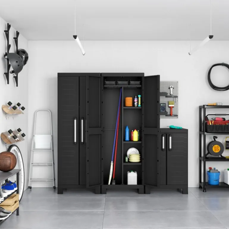 Detroit Alto è dotato di 3 ripiani regolabili con portata massima di 10 Kg ciascuno, di un ripiano fisso con portata massima di 15 Kg e di un’area per riporre gli oggetti più ingombranti. Il suo aspetto caratteristico lo rende ideale per l’organizzazione del garage.
