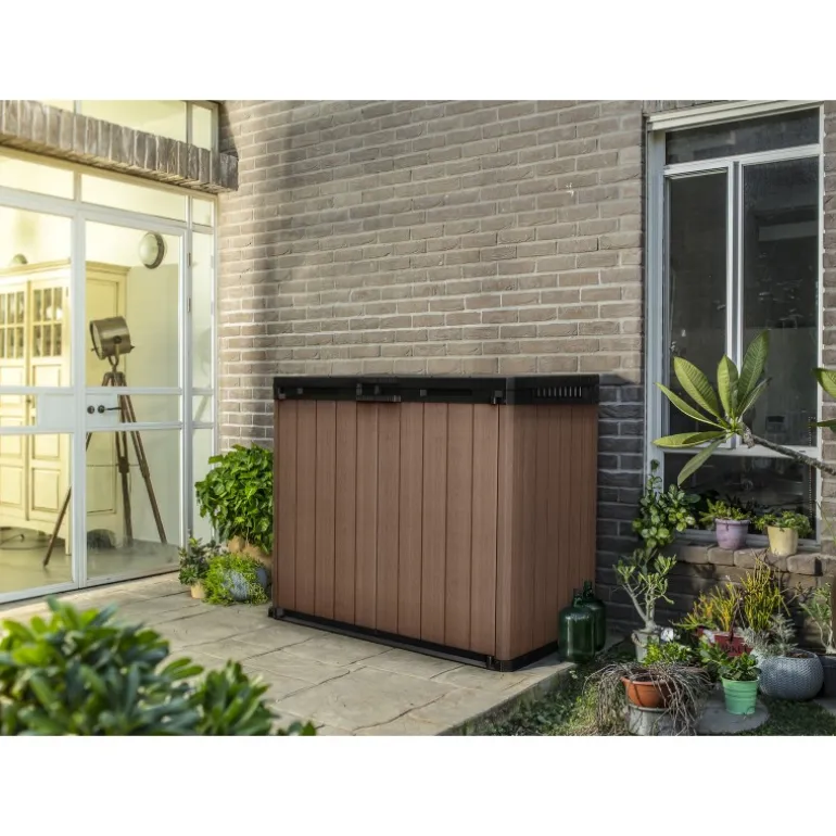 Portattrezzi in effetto legno di polipropilene ad alta qualità resistente a intemperie e ai raggi UV