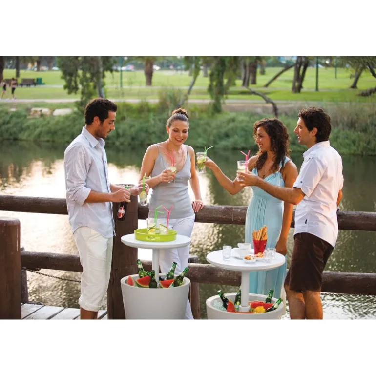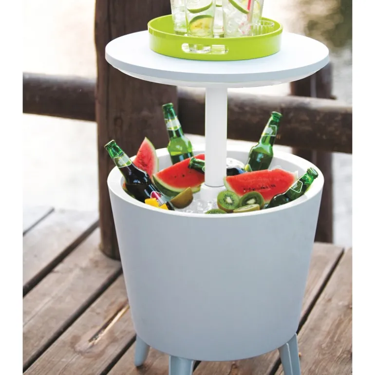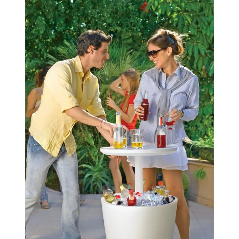 Il tavolino in resina Cool Bar ha la doppia funzione di porta bevande e tavolino. Perfetto per party o barbecue.