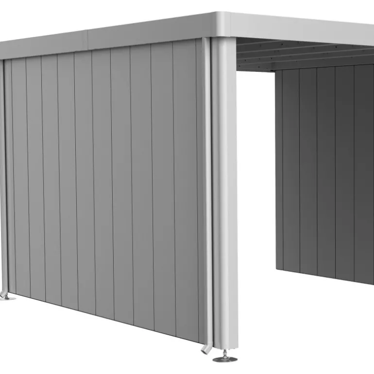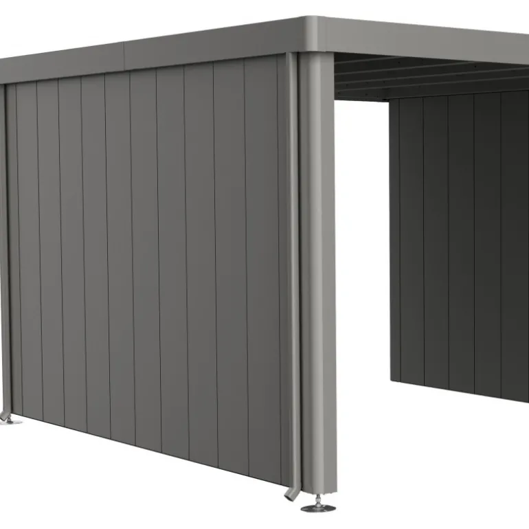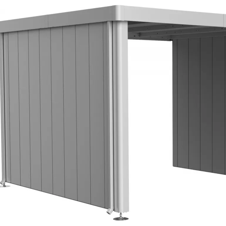 Se lo desideri, puoi installare una parete laterale sulla tettoia laterale della casetta Neo. È disponibile nello stesso colore della casetta.
