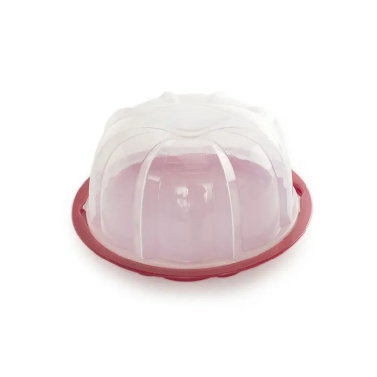 Porta torte in plastica BPA Free con piatto e coperchio trasparente.