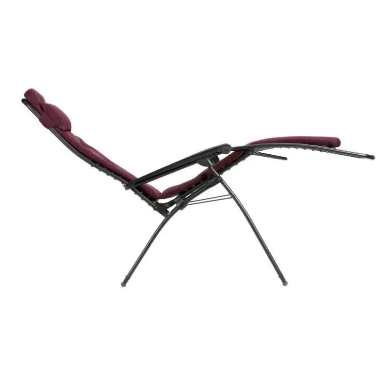 – Tela imbottita: AirComfort®, imbottitura a 3 spessori, traspirante, asciugatura rapida. Tela removibile e sostituibile con fissaggio tramite clip in elastomero (brevetto LAFUMA MOBILIER).