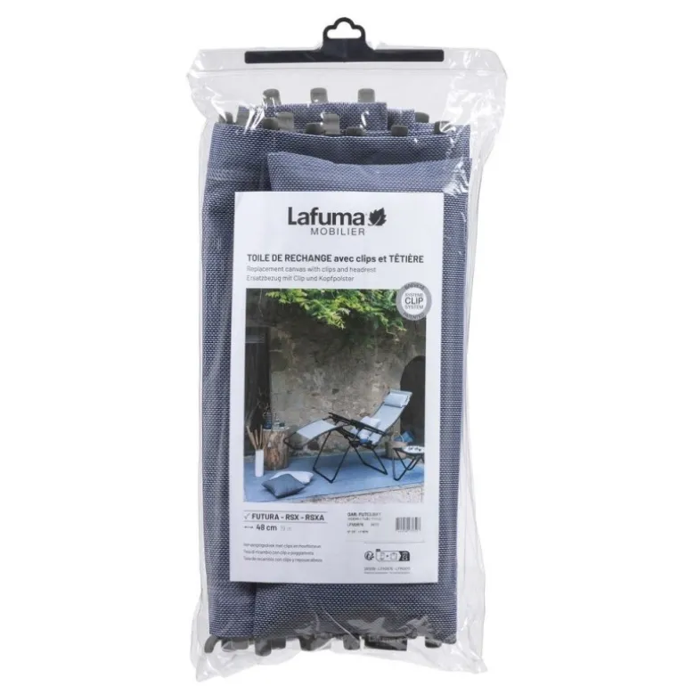 Il set di ricambio per la sdraio-poltrona relax FUTURA o RSX CLIP in Batyline® ISO contiene una tela e una testiera. Questo set è molto facile da montare e vi offrirà un comfort di qualità pari all’originale. Tela ideale per l’esterno: resistenza straordinaria ai raggi UV, asciugatura ultra-rapida e facile da pulire con acqua e sapone.
