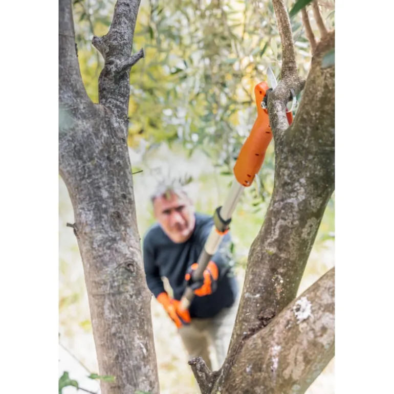 La forbice telescopica Magma E-35 TR 21 V è una novità della linea Magma 21 V e un’evoluzione del troncarami a batteria. Infatti, la lunghezza di 210-320cm e la testa snella permettono un ottimo ingresso nella pianta, per raggiungere a maggiori altezze anche i rami più interni. Il peso di 2500gr senza batteria permette di lavorare bene da terra, e di non appesantire le spalle, grazie alla maggiore lunghezza dell’asta. La batteria non è in dotazione, infatti la forbice telescopica Magma E-35 TR 21V fa parte del Magma System compatibile con la power line 21 V, ed è quindi compatibile con tutte le batterie disponibili 2,6 Ah / 21,6 V, 4 Ah/21,6V e 8 Ah/21,6V.