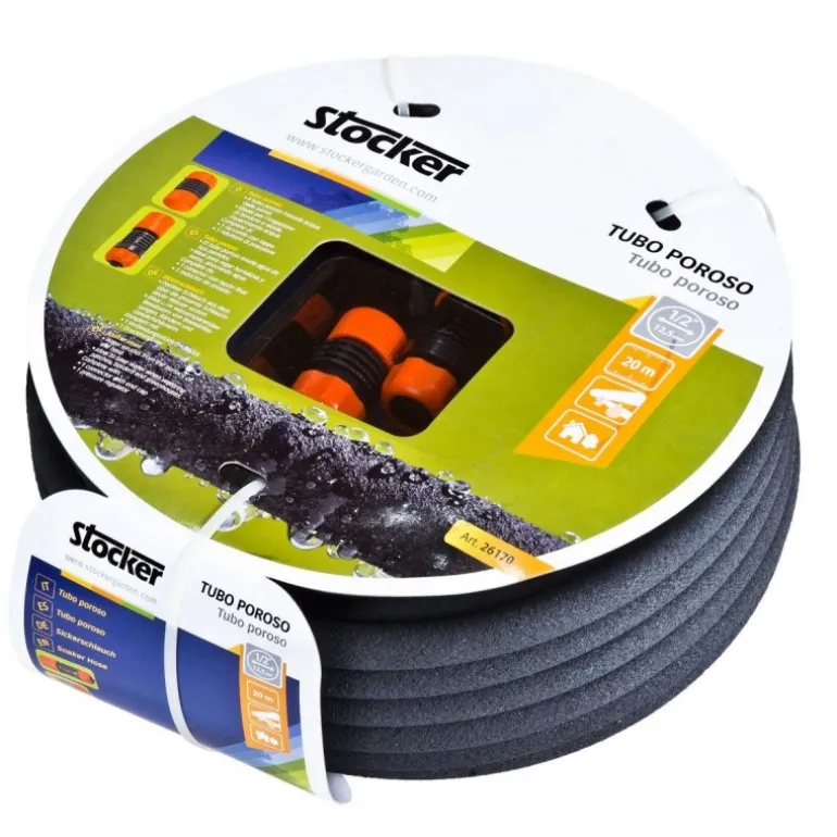 Il tubo poroso trasuda acqua dalle pareti. Ideale per l’irrigazione di bordure e aiuole con notevole risparmio d’acqua. Il set include: – 1 raccordo portagomma 1/2 – 1 raccordo portagomma 1/2 acqua -stop – 1 riduttore di pressione