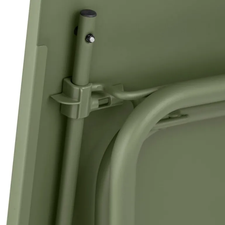 – Struttura: base con tubo in acciaio A.L.E. (Alto limite elastico) Ø 25 mm. Vernice 100% poliestere, elevata resistenza ai raggi UV. Sistema di progettazione che consente di ottenere il massimo dello spazio all’altezza delle gambe.
