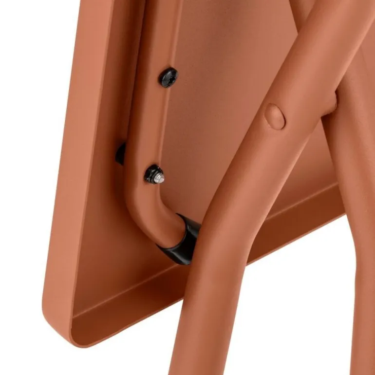 – Struttura: base con tubo in acciaio A.L.E. (Alto limite elastico) Ø 25 mm. Vernice 100% poliestere, elevata resistenza ai raggi UV. Sistema di progettazione che consente di ottenere il massimo dello spazio all’altezza delle gambe.
