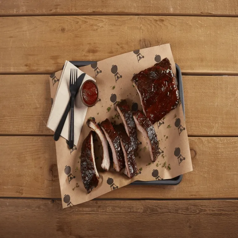 Servi carne sempre succulenta e saporita e ottieni un bark perfetto avvolgendola nella Carta per alimenti Weber. Avvolgere la carne nell’ultima fase di cottura low & slow aiuta a preservarne il giusto grado di umidità. La Carta per alimenti Weber reca impressa l’immagine del Weber Kettle per una presentazione accattivante.