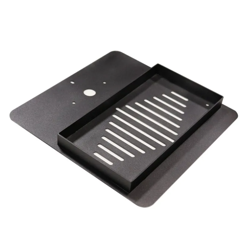Base in acciaio zincato e verniciato per esterni, con griglia di scarico e bordatura per sassi decorativi. Adatta a fontane a colonna Aquapoint della linea Ground.