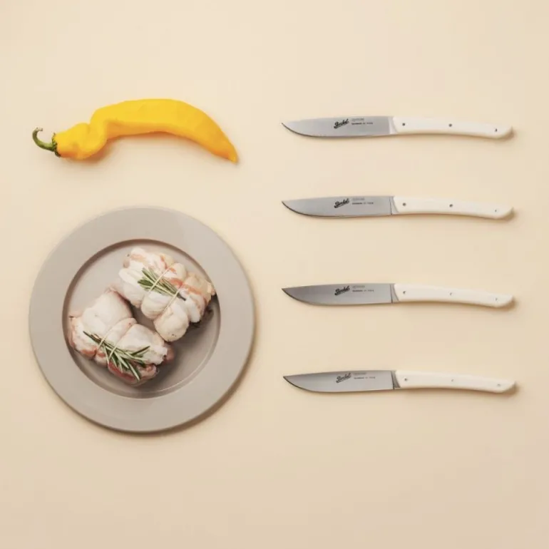 • Lama in accaio inossidabile martensitico Aperam MA4 (AISI 420c) – 1.4034. L’AISI 420 è il grado di acciaio martensitico più utilizzato nella coltelleria, perché presenta buona resistenza alla corrosione e permette di essere facilmente affilato.