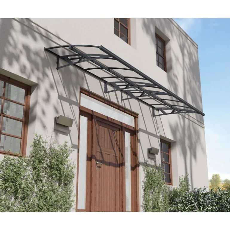 Il tettuccio per porta Amsterdam è elegante, funzionale e resistente, progettato per tenere ingresso, porta o facciata asciutta e protetta dalle intemperie. Copri ingresso, barbecue e bicicletta, riducendo la quantità di luce del sole diretta. I bracci di supporto in acciaio galvanizzato verniciato a polvere, la grondaia frontale in alluminio e le finiture posteriori, insieme ai pannelli resistenti ai raggi UV al 100% solidi ad alto impatto rendono Amsterdam una pensilina perfetta. Il design robusto e moderno si abbina a ogni arredamento e ambiente. Aggiungi valore alla tua casa o proprietà con un’estensione ecologica fai da te, realizzata per poter essere usata negli anni.