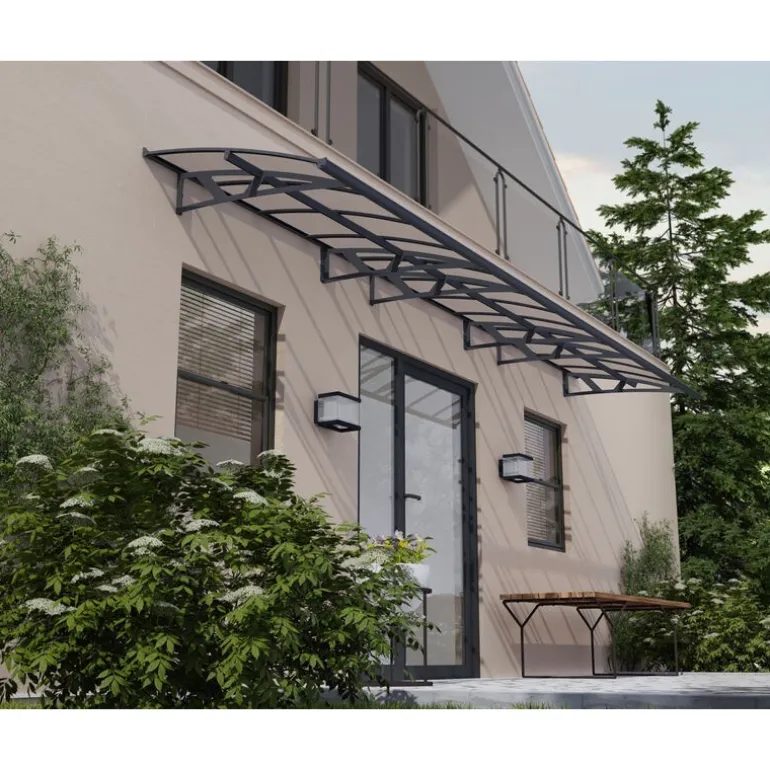 Il tettuccio per porta Amsterdam è elegante, funzionale e resistente, progettato per tenere ingresso, porta o facciata asciutta e protetta dalle intemperie. Copri ingresso, barbecue e bicicletta, riducendo la quantità di luce del sole diretta. I bracci di supporto in acciaio galvanizzato verniciato a polvere, la grondaia frontale in alluminio e le finiture posteriori, insieme ai pannelli resistenti ai raggi UV al 100% solidi ad alto impatto rendono Amsterdam una pensilina perfetta. Il design robusto e moderno si abbina a ogni arredamento e ambiente. Aggiungi valore alla tua casa o proprietà con un’estensione ecologica fai da te, realizzata per poter essere usata negli anni.