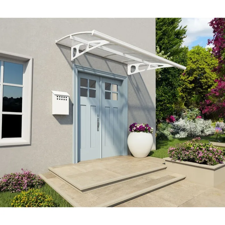Il tettuccio per porta Bordeaux è elegante, funzionale e resistente, progettato per tenere ingresso, porta o facciata asciutta e protetta dalle intemperie. Copri ingresso, barbecue e bicicletta, riducendo la quantità di luce del sole diretta. I bracci di supporto in acciaio galvanizzato verniciato a polvere, la grondaia frontale in alluminio e le finiture posteriori, insieme ai pannelli resistenti ai raggi UV al 100% solidi ad alto impatto rendono Bordeaux una pensilina perfetta. Il design robusto e moderno si abbina a ogni arredamento e ambiente. Aggiungi valore alla tua casa o proprietà con un’estensione ecologica fai da te, realizzata per poter essere usata negli anni.