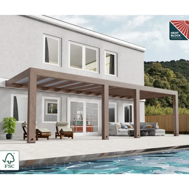 Quando ami l’ambiente che ti circonda, sei naturalmente portato a trascorrere più tempo in esso. La Copertura per Terrazza in Legno Helsinki incarna questo concetto, raggiungendo quel perfetto equilibrio tra praticità e bellezza. Non solo protegge te e i tuoi mobili dalle intemperie, ma crea uno spazio dedicato al relax e al piacere. La bellezza naturale del legno di cedro aumenta il fascino della tua area abitativa all’aperto, creando un’atmosfera calda e accogliente perfetta per ospitare una festa o goderti un momento di tranquillità all’aperto.La resistenza intrinseca del legno di cedro di alta qualità alla marcescenza, al degrado e ai parassiti lo rende una scelta eccellente per una copertura per terrazza all’aperto. La struttura massiccia con un design elegante e minimalista presenta grandi pali con grondaie integrate e pannelli del tetto Solar Control grigi, a prova di perdite, che ti permettono di goderti il tuo spazio all’aperto tutto l’anno, rimanendo fresco in estate e asciutto e protetto in inverno.Progettata pensando alla convenienza, la Copertura per Terrazza in Legno Helsinki è semplice da installare e facile da mantenere. Non c’è bisogno di riverniciarla per cinque anni, il che significa che puoi dedicare meno tempo alla manutenzione e più tempo a goderti il tuo spazio. Respira profondamente, siediti e goditi il posto in cui ti trovi.