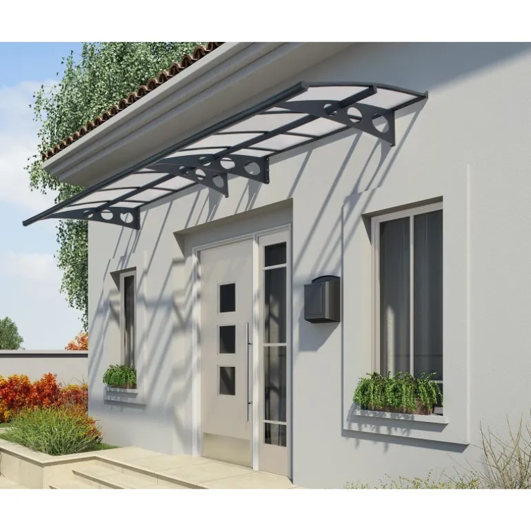 Il tettuccio per porta Herald elegante e robusto è progettato per tenere ingresso e porta asciutta e protetta dalle intemperie. Copre porta di ingresso, barbecue e bicicletta. I bracci di supporto in acciaio galvanizzato verniciato a polvere, la parte frontale in alluminio e le finiture posteriori, insieme a pannelli in policarbonato doppi resistenti a UV al 100% praticamente indistruttibili che filtrano i raggi del sole dannosi, rendono Herald una pensilina perfetta. Il design robusto e moderno si abbina a ogni arredamento. La grondaia frontale e la guarnizione in gomma nascosta spingono pioggia e neve di lato, tenendo l’ingresso pulito. Questo prodotto fai da te è realizzato in materiali di alta qualità che assicurano durata per anni e include tutti gli accessori per il montaggio.