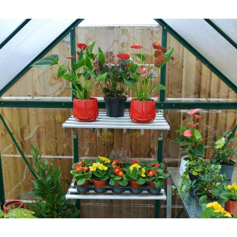 Hybrid è un modello di serra ingegnoso per appassionati di giardinaggio che offre 2 tipi di pannelli in policarbonato praticamente indistruttibile insieme a telaio in alluminio inossidabile resistente, verniciato a polvere. Questo prodotto soddisfa tutte le esigenze di giardinaggio. I pannelli sul tetto doppi bloccano il 100% dei raggi UV dannosi e diffondo la luce diretta del sole. I pannelli sui lati trasparenti fanno passare il 90% della luce del sole. La serra Hybrid è robusta, esteticamente bella e non richiede manutenzione per anni di divertimento in giardino.