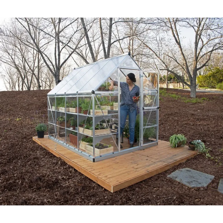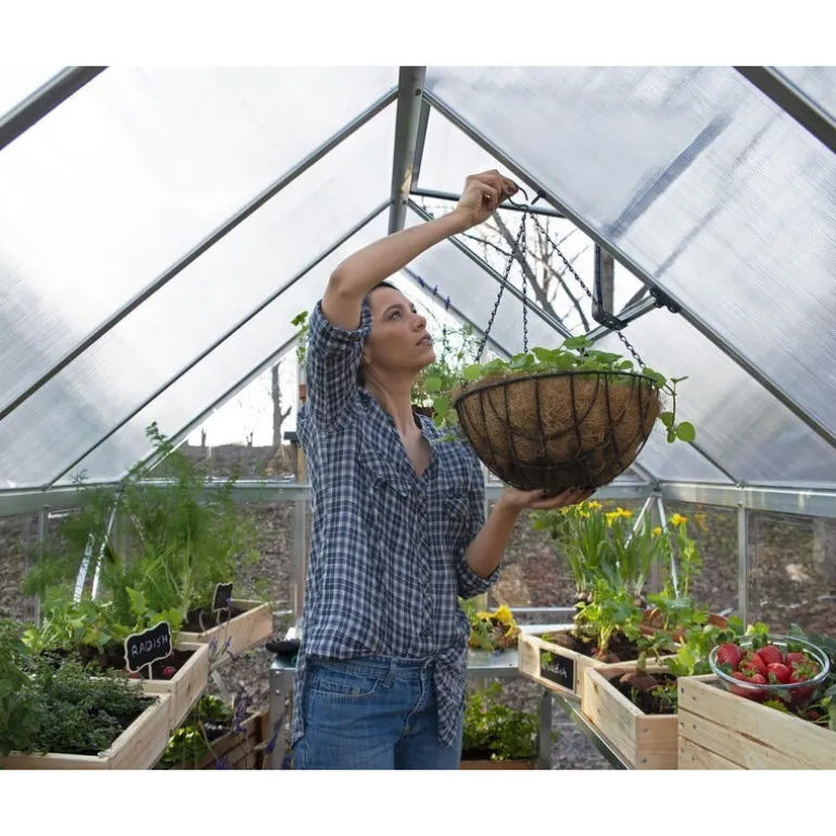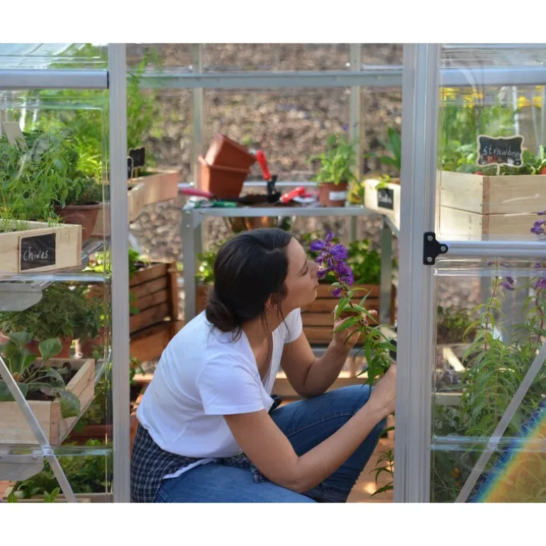 Hybrid è un modello di serra ingegnoso per appassionati di giardinaggio che offre 2 tipi di pannelli in policarbonato praticamente indistruttibile insieme a telaio in alluminio inossidabile resistente, verniciato a polvere. Questo prodotto soddisfa tutte le esigenze di giardinaggio. I pannelli sul tetto doppi bloccano il 100% dei raggi UV dannosi e diffondo la luce diretta del sole. I pannelli sui lati trasparenti fanno passare il 90% della luce del sole. La serra Hybrid è robusta, esteticamente bella e non richiede manutenzione per anni di divertimento in giardino.