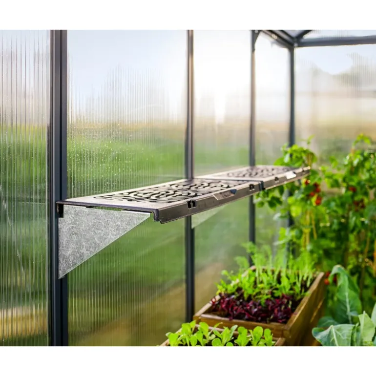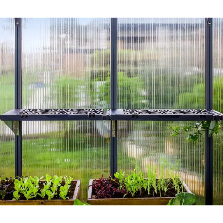 Rendi la tua serra Palram – Canopia più accessoriata con questo kit di scaffali. Risparmia spazio e rendi la struttura più funzionale. Gli scaffali sono realizzati in polypropylene facile da pulire con bracci e cerniere in acciaio galvanizzato. Ogni scaffale supporta fino a 20 kg e si monta sul telaio della serra. Questi scaffali possono essere smontati per rimuovere piante o terriccio in eccesso che potrebbe accumularsi sul fondo del ripiano.