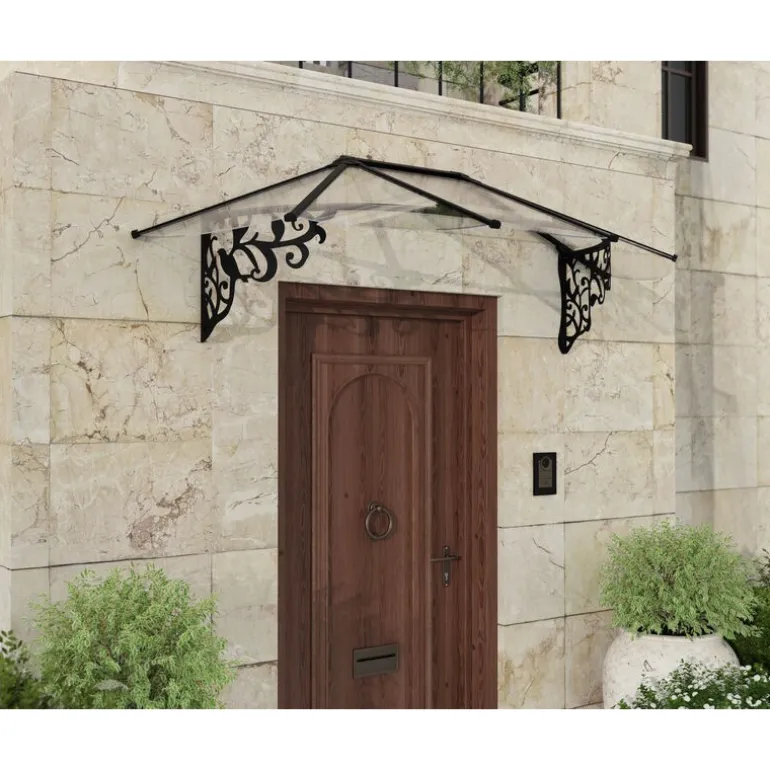 Proteggete il vostro ingresso e rendetelo più bello con la pensilina per porta Palram – Canopia Lily. Grazie ai profili in alluminio antiruggine, alle staffe in acciaio zincato verniciato a polvere, ai dettagli ornamentali e ai pannelli traslucidi, la pensilina per porta è praticamente esente da manutenzione. È facile da assemblare e installare con il kit di montaggio a parete incluso, sia che la si utilizzi come tettoia per finestra, per porta d’ingresso, per portico o per garage. Aumentate il valore della vostra casa o della vostra proprietà con questa estensione ecologica. La tenda da sole è disponibile in diverse misure per diversi utilizzi, sia che si tratti di coprire la finestra, il portico, la porta d’ingresso o il garage, Lirio crea sempre un ingresso di grande effetto.