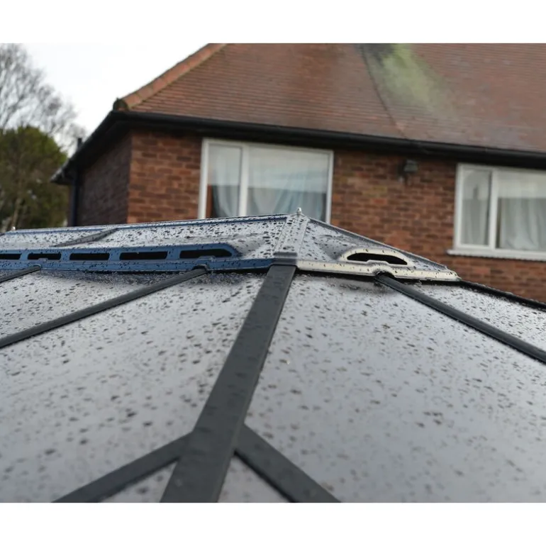 - Pannelli in policarbonato doppio da 6 mm infrangibili che bloccano il 100% dei raggi UV e proteggono da grandine e neve