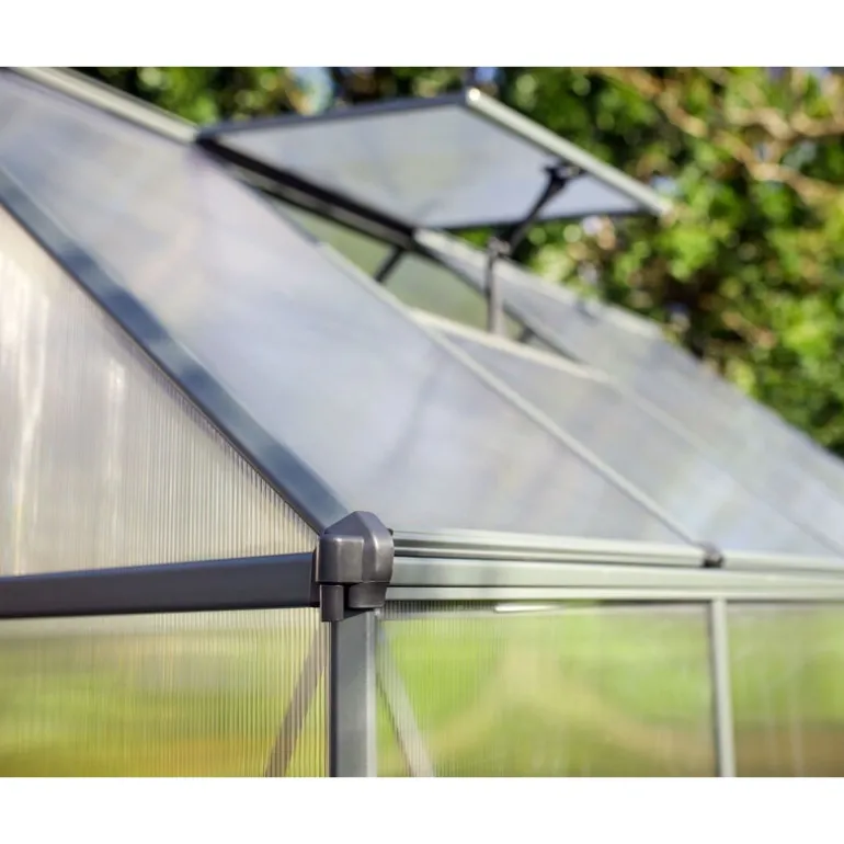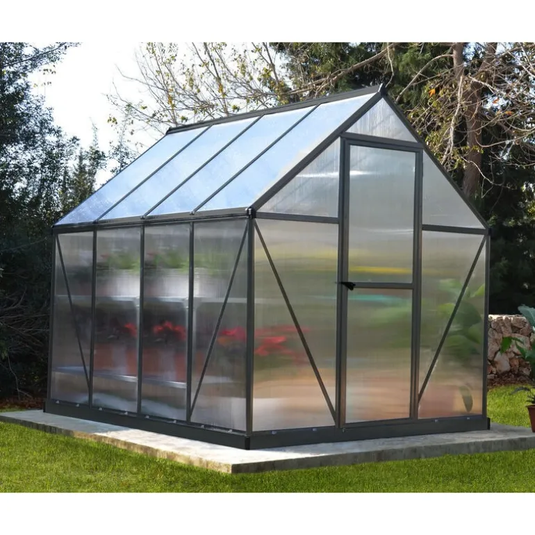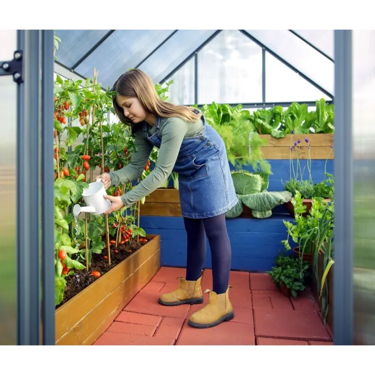 Scopri la Serra da Giardino Canopia Mythos, elegante e pratica, ideale per proteggere le tue piante in ogni stagione. Realizzata con pannelli in policarbonato doppio indistruttibile e struttura in alluminio inossidabile, offre stabilità e durata. Dotata di porta bloccabile, ventola sul tetto e base in acciaio galvanizzato. Facile da installare, non necessita di manutenzione. Dimensioni: 247x185x208 cm. Giardina tutto l’anno con Canopia Mythos!