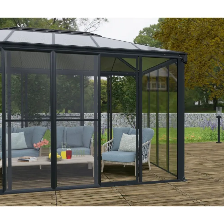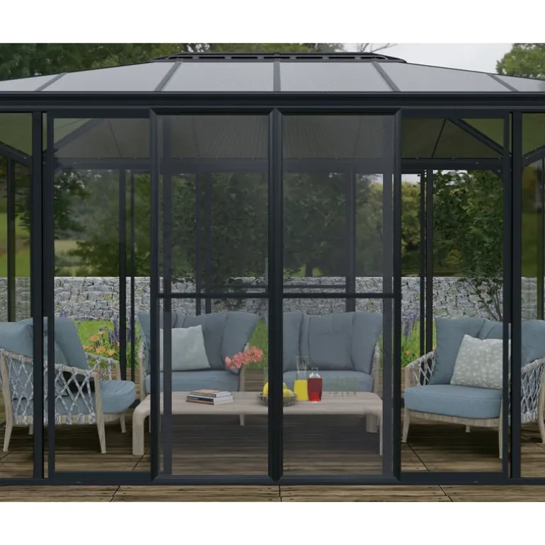 Il set di porte a zanzariera Garda/Sanremo/Ledro vi permetterà di godere della fresca brezza senza che gli insetti vi disturbino. Il set di porte a zanzariera è da assemblare sul proprio profilo, non c’è bisogno di rimuovere le porte. Basta collegare le porte scorrevoli preassemblate a uno o tutti i lati di Garda (6) /Sanremo (3) /Ledro (2) per una facciata senza soluzione di continuità.
