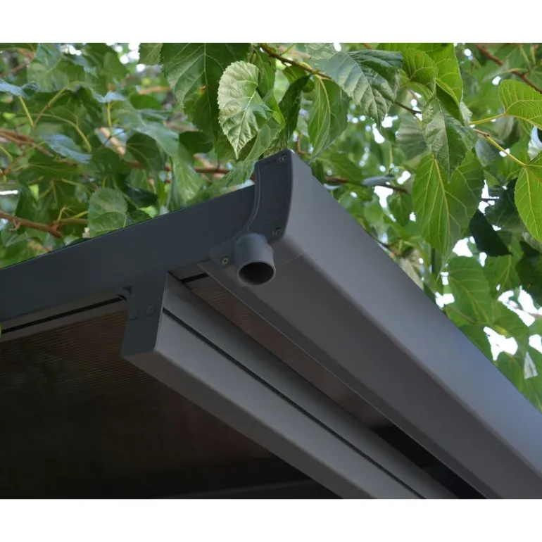 - Pannelli in policarbonato doppio da 6 mm verniciato in bronzo praticamente indistruttibili e che bloccano il 100% dei raggi UV