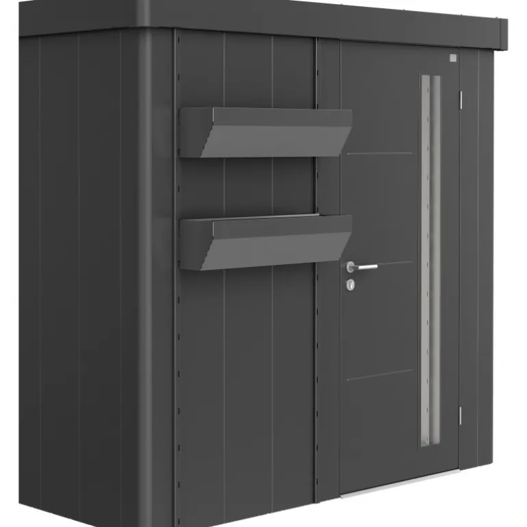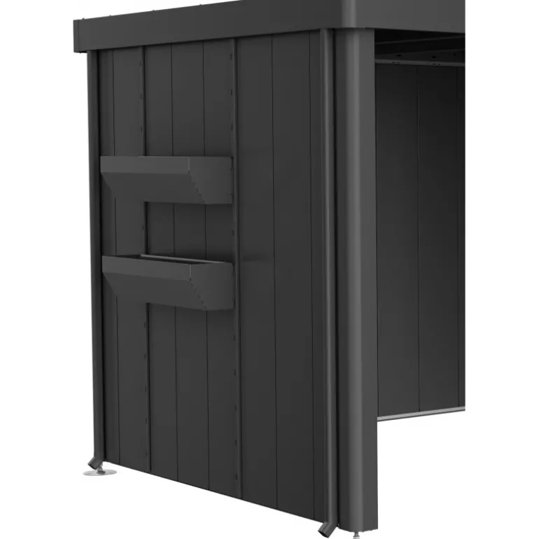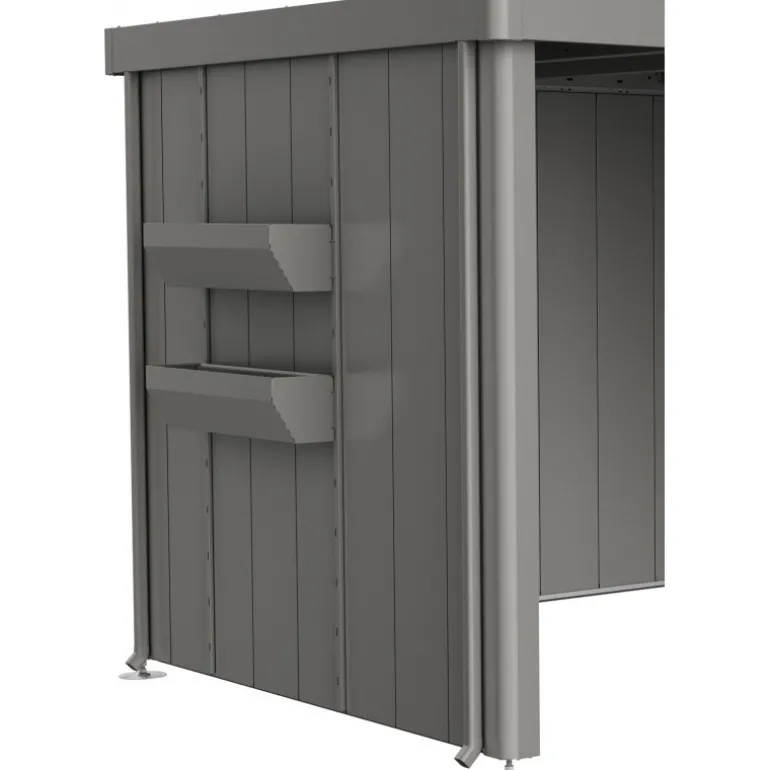 Due supporti dello stesso colore della casetta porta attrezzi vengono fissati con viti alla parete esterna, per poter appendere la fioriera FloraBoard all’altezza desiderata. Gli inserti in plastica per facilitare la messa a dimora delle piante sono inclusi nella confezione del prodotto.