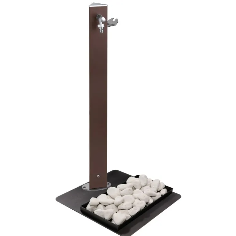 La componentistica comprende, già in dotazione, un basamento in acciaio inox che permette un’installazione facile e immediata, oltre che versatile in base alle diverse esigenze: è ideale per portici, cortili, giardini con pozzetti e piastre, aree cementate, patii e tanto altro.