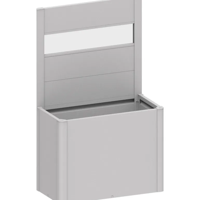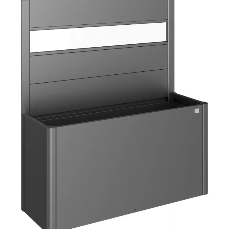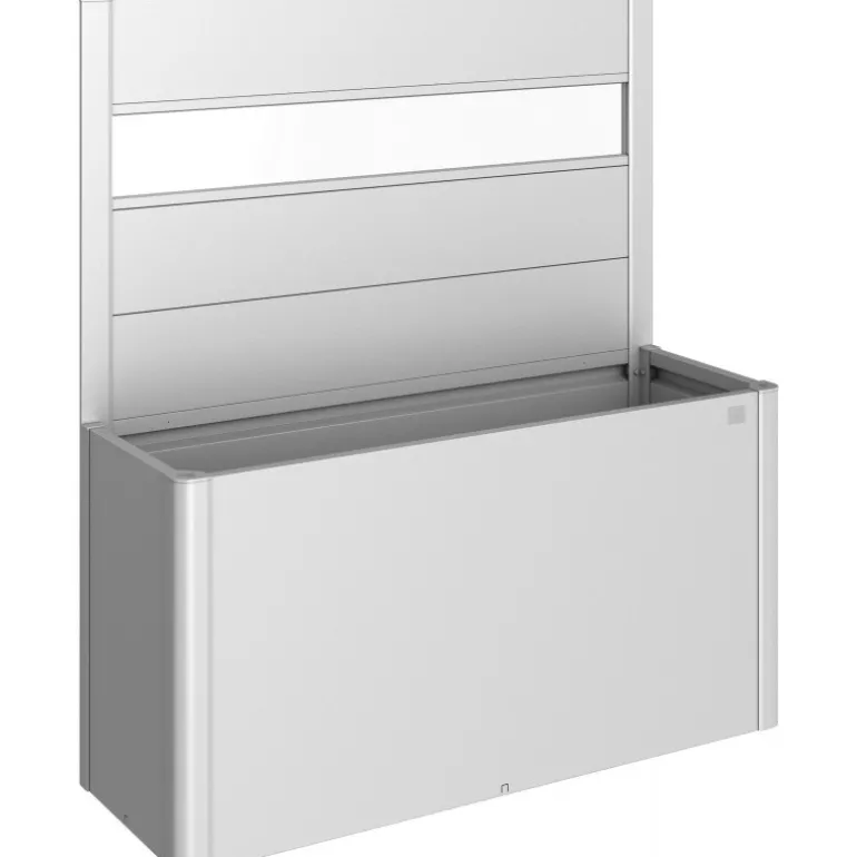 Frangivista con elemento vetro in acrilico per fioriera Belvedere. Il frangivista crea una delimitazione decorativa e non solo si fa apprezzare per l’estetica, ma serve anche come protezione dal vento. Non può essere combinato con il sopralzo o la protezione contro le lumache.