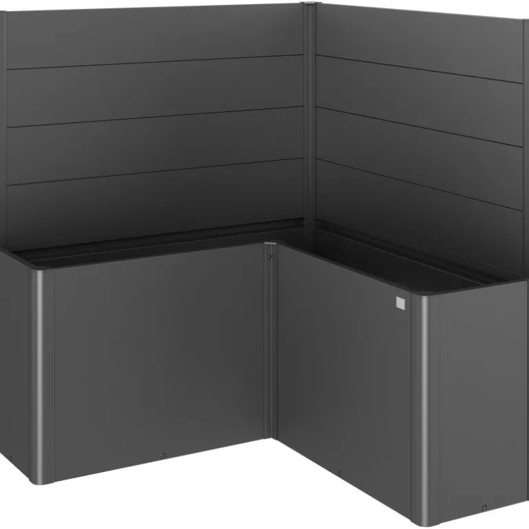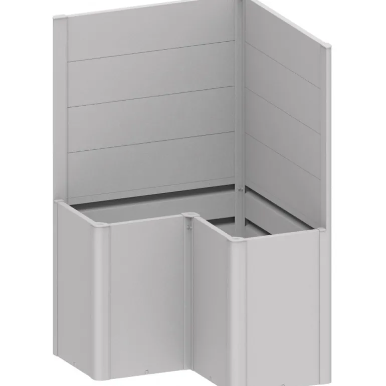 Frangivista per fioriera Belvedere. Il frangivista crea una delimitazione decorativa e non solo si fa apprezzare per l’estetica, ma serve anche come protezione dal vento. Non può essere combinato con il sopralzo o la protezione contro le lumache.