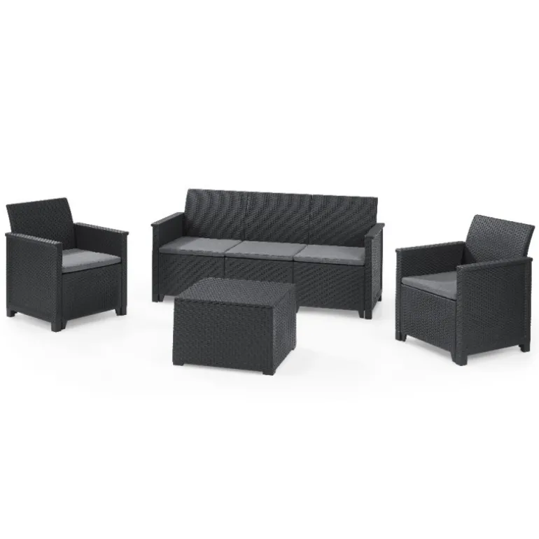Set composto da: 2 Poltrone, 1 Tavolino contenitore e 1 Divano tre posti.