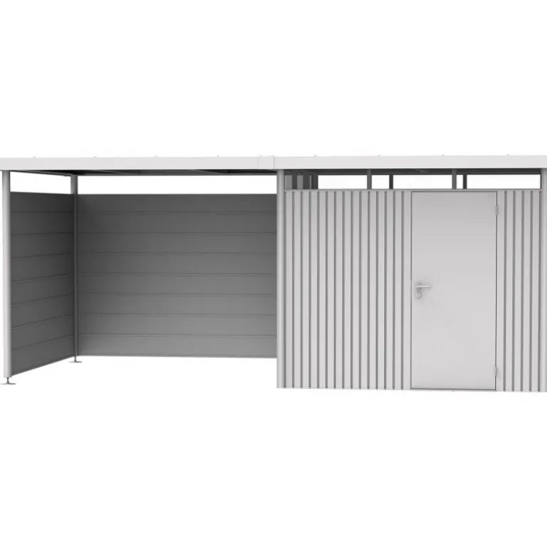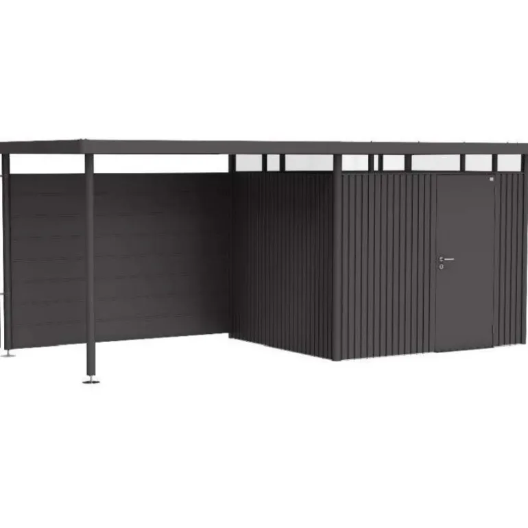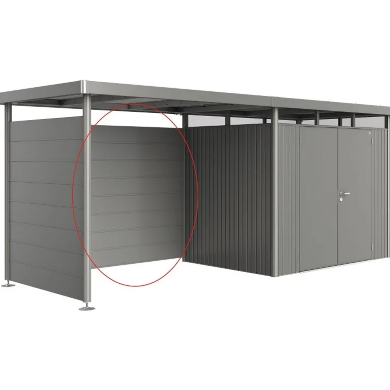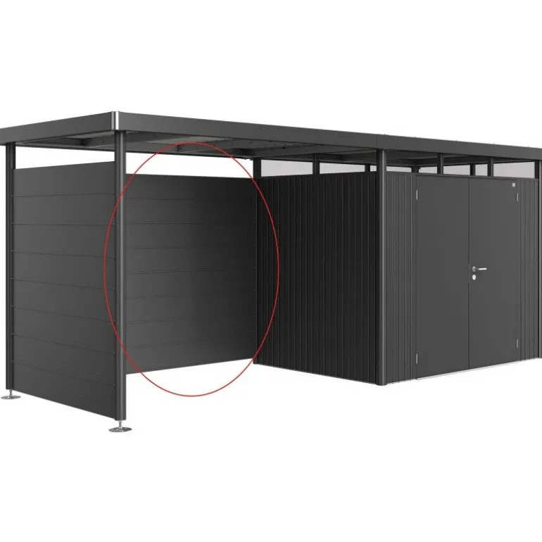 Facoltativamente, si può decidere di aggiungere una parete posteriore e/o una parete laterale alla tettoia laterale della casetta porta attrezzi HighLine (a partire dalla mis. H2). Le pareti sono disponibili negli stessi colori delle casette.
