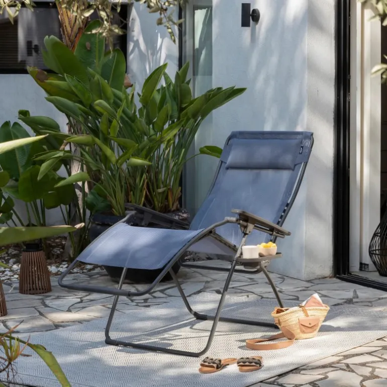 – Tela: Batyline® ISO. Tela removibile e sostituibile con fissaggio tramite clip in elastomero (brevetto LAFUMA MOBILIER).