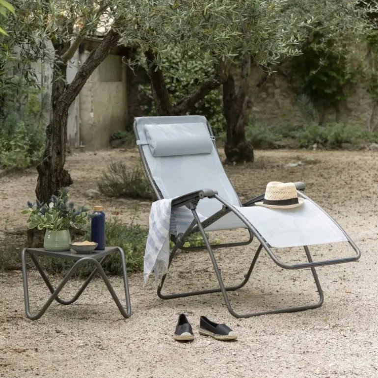 – Tela: Batyline® ISO. Tela removibile e sostituibile con fissaggio tramite clip in elastomero (brevetto LAFUMA MOBILIER).