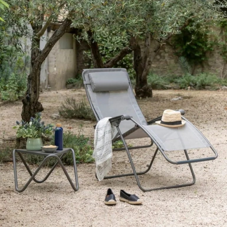 – Tela: Batyline® ISO. Tela removibile e sostituibile con fissaggio tramite clip in elastomero (brevetto LAFUMA MOBILIER).