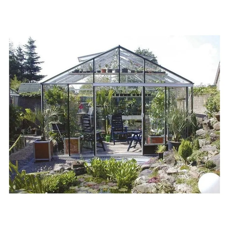 Serra da giardino di grandi dimensioni utilizzata da floricoltori o amatori esigenti che vogliono mettere al riparo un numero elevato di piante e fiori.